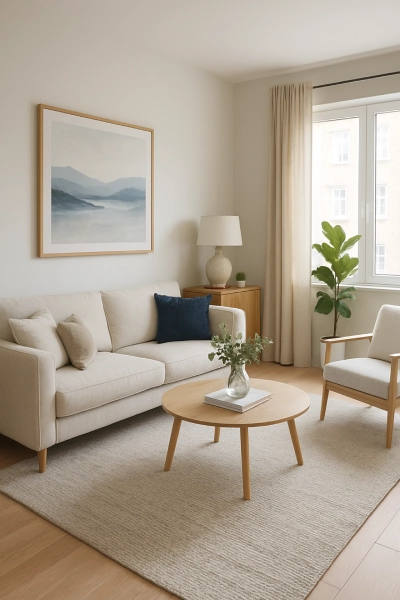 - Stałe elementy – zabudowy kuchenne, panele, drzwi, okna.